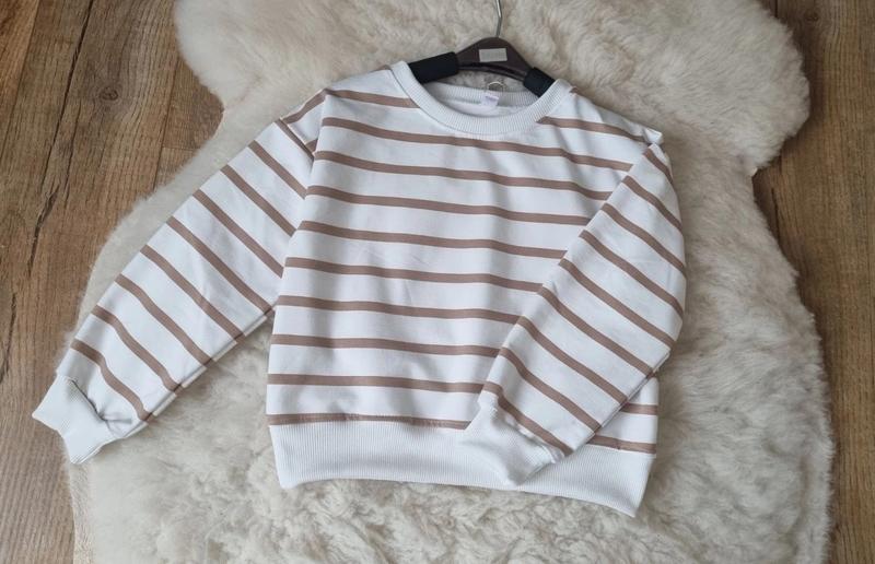 В НАЯВНОСТІ!!! Хіт сезону! Стильний весняний свiтшот, Тканина двухнитка пенье, на рукавах манжетики! Колір полоски чорний 134р(1 шт)-довжина 41,рукав від горловини 53,пог 43 140р(1 шт)-довжина 43,рукав від горловини 55,пог 44 146р(2 шт)-довжина 45,рукав від горловини 56,пог 46 152р(2 шт)-довжина 48,рукав від горловини 58,пог 47 158р(1 шт)-довжина 50,рукав від горловини 60,пог 48 164р(1 шт)-довжина 55,рукав від горловини 64,пог 49 допустима похибка +-1 см