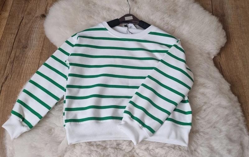 В НАЯВНОСТІ!!! Хіт сезону! Стильний весняний свiтшот, Тканина двухнитка пенье, на рукавах манжетики! Колір полоски чорний 134р(1 шт)-довжина 41,рукав від горловини 53,пог 43 140р(1 шт)-довжина 43,рукав від горловини 55,пог 44 146р(2 шт)-довжина 45,рукав від горловини 56,пог 46 152р(2 шт)-довжина 48,рукав від горловини 58,пог 47 158р(1 шт)-довжина 50,рукав від горловини 60,пог 48 164р(1 шт)-довжина 55,рукав від горловини 64,пог 49 допустима похибка +-1 см