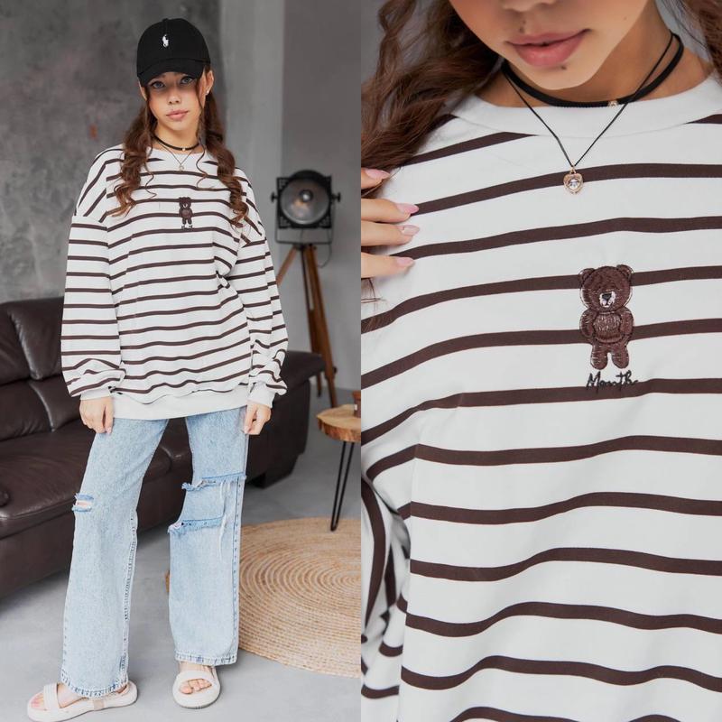 Таня Світшот у смужку подовжене зі справжньою вишивкою "ВІННІ" Тканина турецька петля манжети рібана колір смужки коричневий СУПЕР ЯКІСТЬ розмір/довжина/пог/рукав від горловини похибка+-2см 140-146/55/52/59-2шт 146-152/58/54/61-2шт 152-158/61/56/65-2шт 158-164/65/58/68-2шт 164-170/70/60/72-2шт
