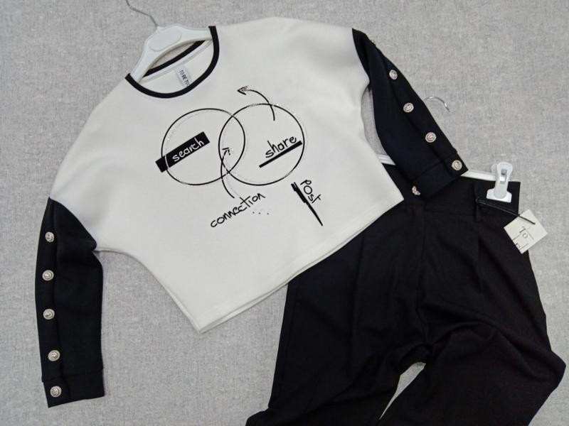 Укорочений світшот від італійського бренду To be too На рукавах декоративні гудзики. Стильно поєднується з різними образами S 140/146 M 146/152 L 152/158 XL 164 Працюємо по частковій або повній передплаті офіційно! Повернення немає, але є обмін, якщо не підійшов розмір за рахунок покупця!