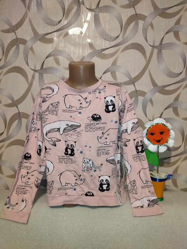 Світшот на дівчинку в принт від H&M, зріст вказаний 8-10 л (134-140р) Світло-рожевий.Сстань гарний, злегка розтягнулися манжети та гумка внизу.Заміри нададуть за запитом