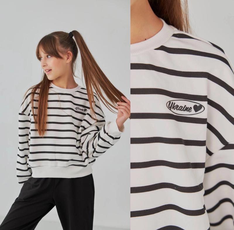 арт 3299 Свитшот в полоску Ткань турецкая петля (не скатывается) манжеты зерена цвет полоски черный рост/длина/пог/рукав от горловины похибка+-2см 146-152/46/54/61-1шт 152-158/49/56/65-1шт 158-164/52/58/67-1шт Тан