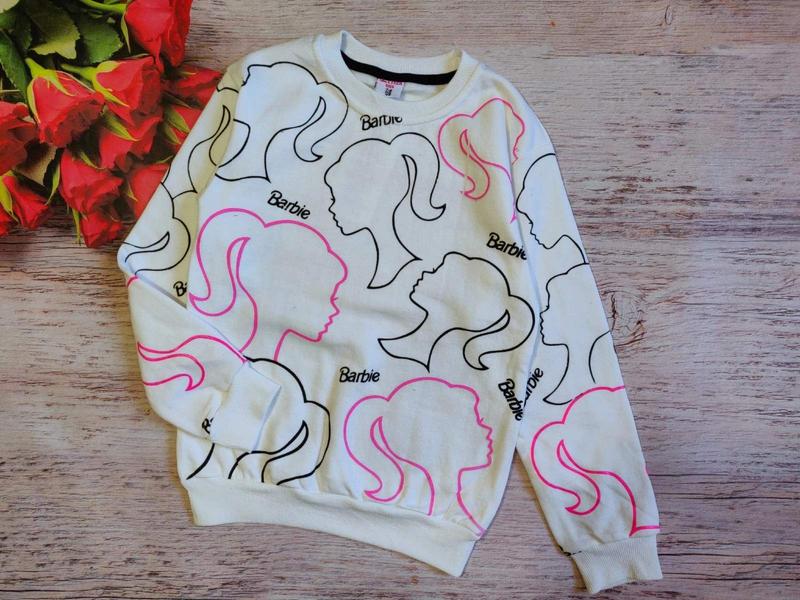 відправка четвер 475 грн Світшот Barbie тканина двухнитка флісі виробник: Туреччина Заміри: довжина/пог/рукав від плеча 128 - 47/35/43 134 - 50/37/45 140 - 51/39/47 146 - 55/40/51 152 - 57/43/52 крем 128-5шт 134-5шт 140-5шт 146-5шт 152-5шт