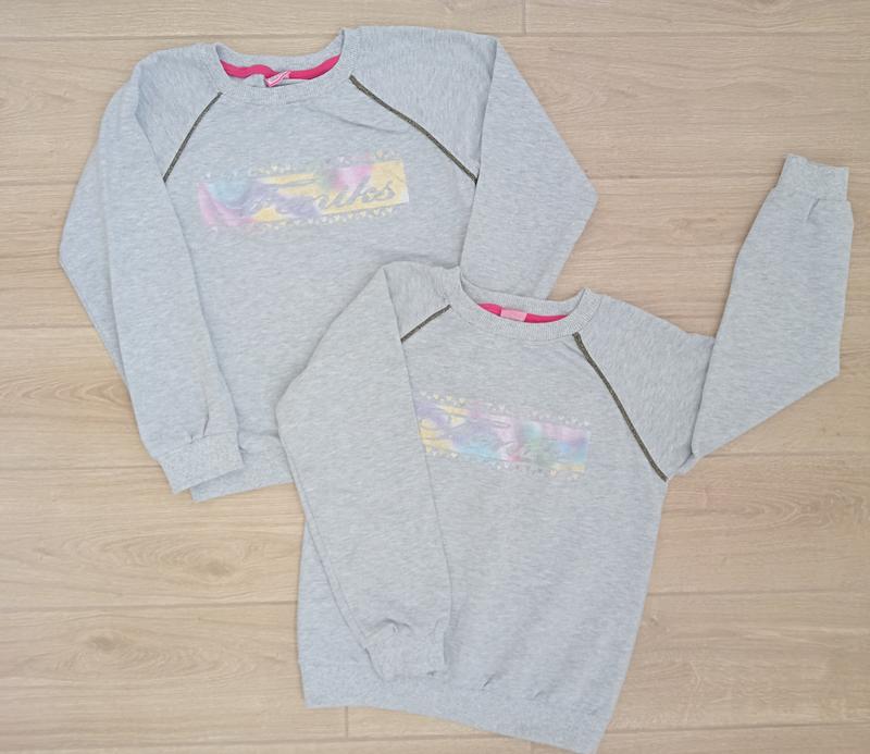 Свитшот без утепления, с принтом. Цвет - серый. В наличии 1 штука! Бренд - FENIKS Размер указан - 128 см Плечи - опущенные ПОГ - 39 Рукав от горловины - 53 Длина по спине - 45 Состояние - отличный
