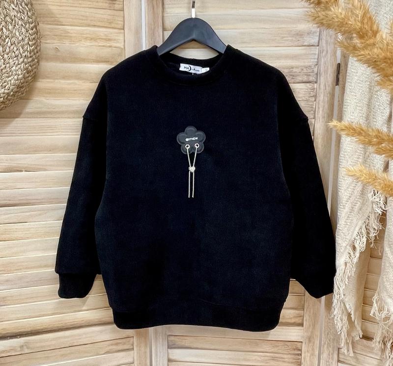 арт 3935 Гарний світшот Тканина мікро-вельвет дуже гарної якості на флісі щільний, дуже теплий та приємний до тіла колір чорний зріст/довжина/пог/рукав від горловини похибка +-2см 140/58/48/56-2шт 152/60/53/59-2шт 158/62/54/63-2шт 164/64/57/68-2шт