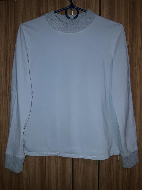 Стрейчевий , легкий светр з в'язаними манжетами і горловиною, Дуже гарна якість. колір світло сірий . дл. 55, пог. 44 , рук. 54.