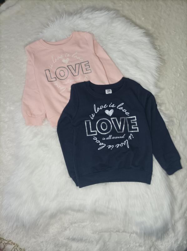 Стильные свитшоты для девочек Надпись Love сверкает Тканина двунитка Размеры Синя 104, 116, 122 Розовая 104, 98 замеры 98: рукав 39, плечи 27, грудь 32, длина 39 104: рукав 40, плечи 28, грудь 33, длина 40 116: рукав 43, плечи 29, грудь 35, длина 44 122: рукав 45, плечи 31, грудь 36, длина 47