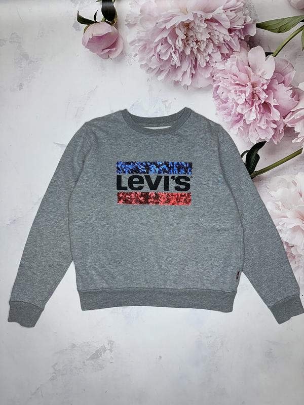 Тепленький світшот. Тринитка на байці. Манжети не розтягнуті. Червоний і синій колір із паєток Оригінал Довжина 50. ПОГ 48. Рукав 54/64.