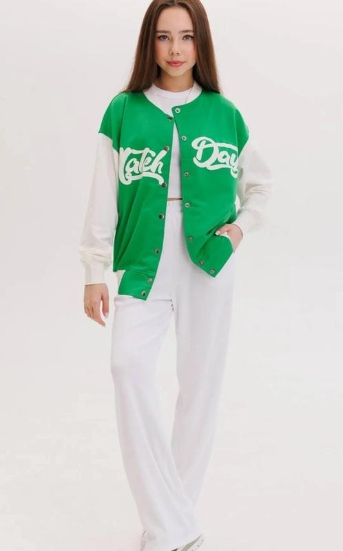 Стильний бомбер для дівчаток Весна/Літо💙💛 Тканина-турецька двохнитка « Пін‘є» 🧷Застібається на кнопки. Є кишені. Якість відмінна! В живу супер 🤩 Розміри повномірні -оверсайз 📌134(1шт) - довжина - 54см, ПОГ - 45см, рукав від горловини - 62см. 📌140(1шт) - довжина - 55см, ПОГ - 47см, рукав від горловини - 64см 📌146(1шт) - довжина - 57см, ПОГ - 49см, рукав від горловини - 65см. 📌158(1шт) - довжина - 62см, ПОГ - 51см, рукав від горловини - 71см. Модн