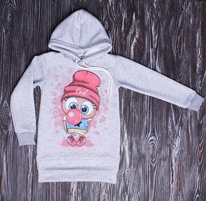 Туніка з начосом з кишенями, принт Сова. Тканина трехниточный футер з начосом.