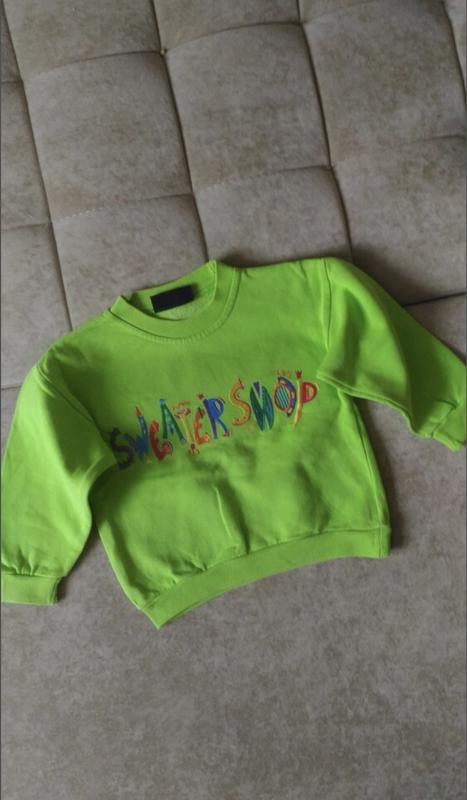 Тепла байкова толстовка англія яскраво-салатового кольору, вишивка гладдю розмір на вік 6-...