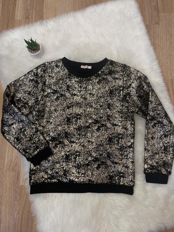 Світшот на дівчинку з напиленням золото,дуже мʼякий всередині,бренд Smyk 👕Розмір 146 📏Заміри : Довжина 51 см Рукав 50 см Плечі 34 см 🔥Стан новий 💰Ціна - 650 грн #Світшоти