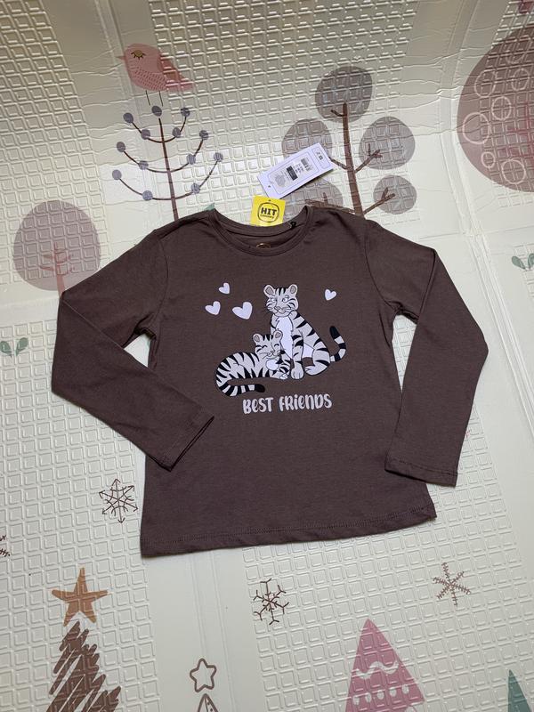 Лонгслів для дівчинки в коричневому кольорі з принтом тигринят. Тканина якісна, приємна на дотик. Бренд: Cool club. Тканина: 100% бавовна. Розмір: 110 см. Ціна: 180 грн. Доставка в межах Одеси безкоштовно.