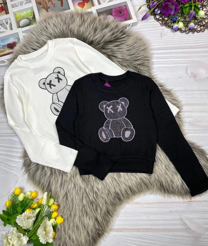 Стильна нарядна кофточка для модниць💗 Тканина ангора рубчик , пришита шикарна аплікація 😍 Доповнить любий образ ! Заміри: довжина кофти/рукав від плеча/пог 128-33/45/30 ЧОРНИЙ