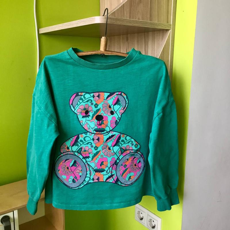 Реглан Next/кофта оверсайз/ з ведмедиком Тканина щільна, не футболочна, а товстіша. Декорована великою аплікацією з ведмедем. Розмір вказаний 10 років/140 см 100% бавовна. Рукав- 36 см від плеча, від горловини 55 см+ 1,5 см горловина/ ширина 47 см/ довжина по центру 47,5 см ззаду, спереду трішки довша 49 см. Стан близький до ідеального. З нюансів - невелика цятка на рукаві(фото 9), в носінні буде непомітною, можливо, відпереться... Продаю багато одягу та взуття Next до 10-ти років, дивіться мої оголошення або запитуйте, якщо щось цікавить. Можу запропонувати акцію 1+1=3(річ за найменшою ціною буде в подарунок).