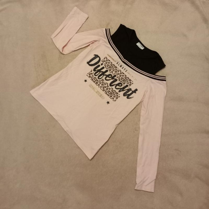 Симпатичний реглан з довгими рукавами і відкритими плечима. Чудове поєднання чорного та пудрового кольорів. В цілому стан ідеальний, окрім трохи потертого напилення на надписі. Вказаний розмір 134-140 (9-10 років). Заміри: ПГ - 37 Довжина - 53 Довжина рукава - 47 Ширина низа - 40 З безпечною оплатою через Укрпошту не працюю!