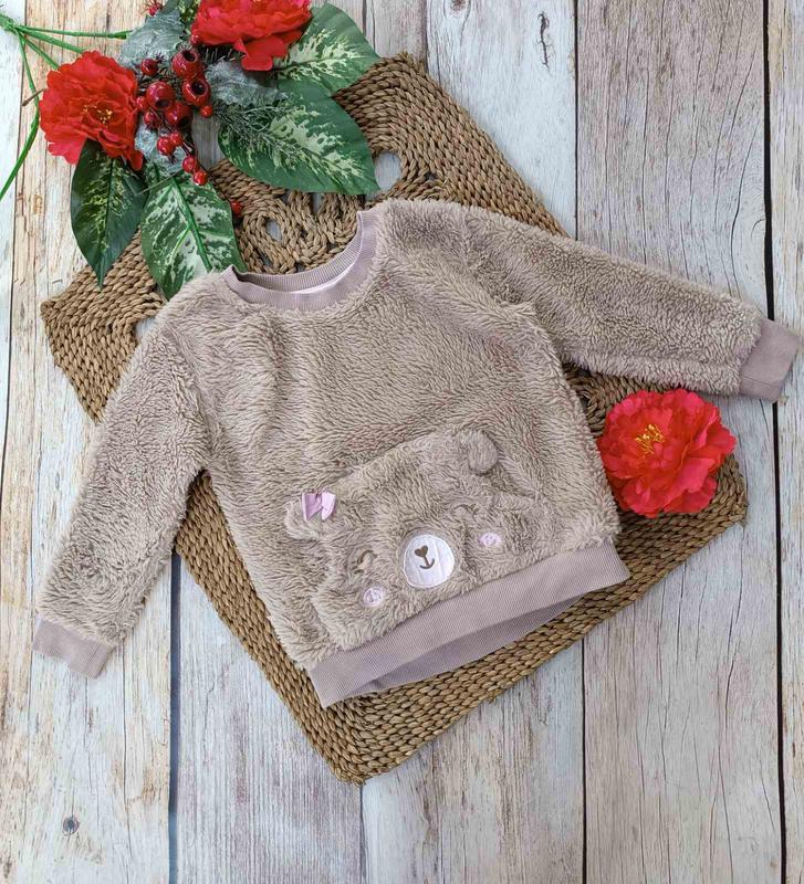 46🐉прикольный миховый свитшот, очень мягкий и приятный, состояние идеальний, возможно маломерит смотрите замеры 📏3/4 года, длина 39, пог 34, рукав 32