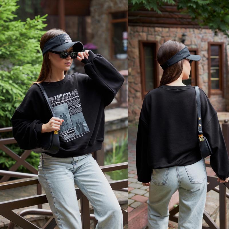 Cвітшот з трендовим накатом Тканина-двунитка турецька пеньє зі зворотньої сторони петля СУПЕР ЯКІСТЬ зріст/довжина/пог/рукав від горловини похибка +-2см 146-152/45/53/61-1шт