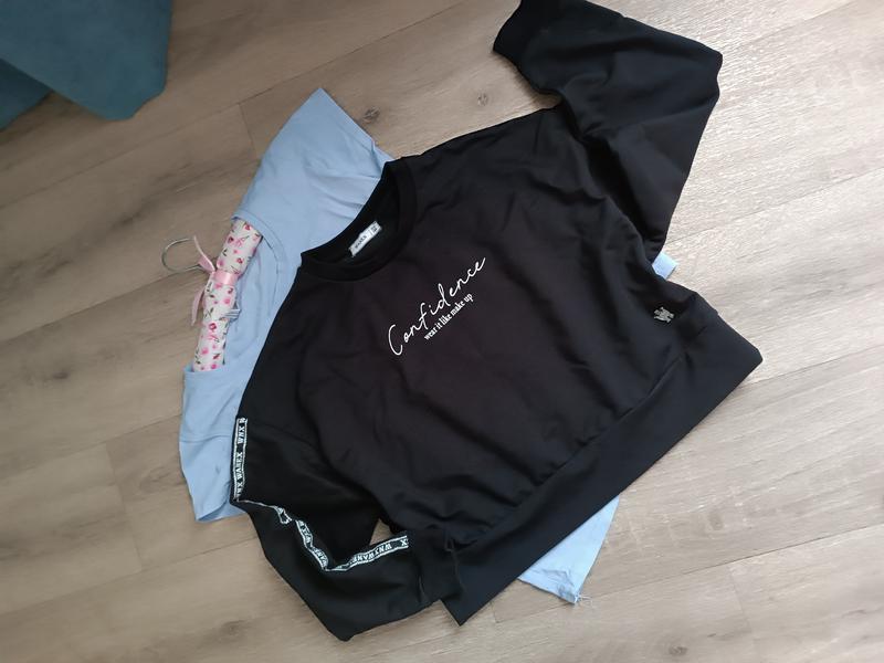 Стильный свитшот насыщенного черного цвета. Ткань отличного качества, не скатывается, отлично стирается. Производитель - Турция. Наклейки-надпись не потрескавшиеся Р-р вказано 140. Замеры по запросу.