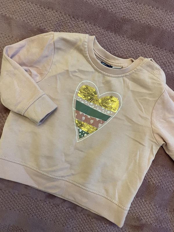 Теплая кофта, имеет красивый принт сердце, можно менять цвет пайеток) цвет кофты нежный персиковый нажаль камера не передает )
