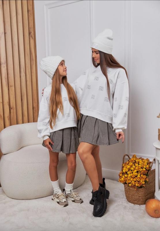 Арт 5938 Світшот : декоровано блискучими каміньчиками "Miu miu" Гарно комбінується із будь яким образом. Тканина-інтерлок (плотний трикотаж). Гарна якість Зріст/довжина/пог/рукав від горловини похибка+-2см 134-140/44/52/60-2шт 140-146/46/53/62-2шт 146-152/48/54/64-1шт 152-158/51/55/66-2шт 158-164/54/57/68-1шт 164-170/56/59/72-2шт Тан