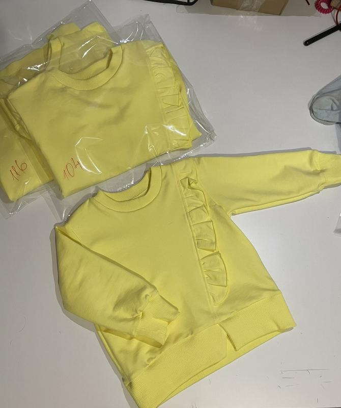 Розпродаж складу!!! Світшоти дитячі для дівчаток. Дуже гарна якість. Виробник Україна. В наявності в двох кольорах. Розміри: жовті- 80, 104, 116; блакитні- 98, 122. Кожного розміру в наявності по 1 шт.