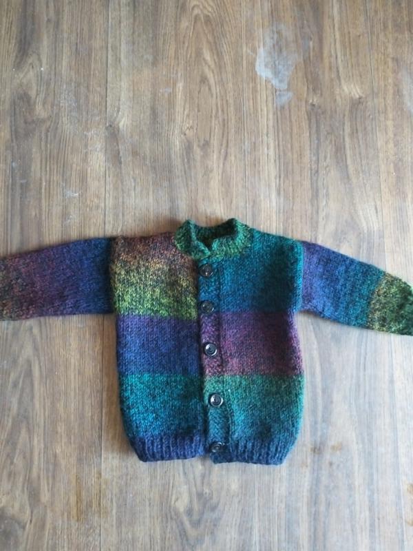 Продам бу дитячу в'язану кофту:плечі-27 см,ширина-26/52 см,довжина-30 см,рукав-21 см