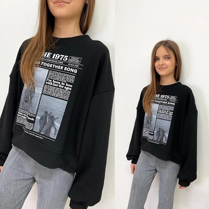 Cвітшот з трендовим накатом Тканина-двунитка турецька пеньє зі зворотньої сторони петля СУПЕР ЯКІСТЬ зріст/довжина/пог/рукав від горловини похибка +-2см 146-152/45/53/61-1шт