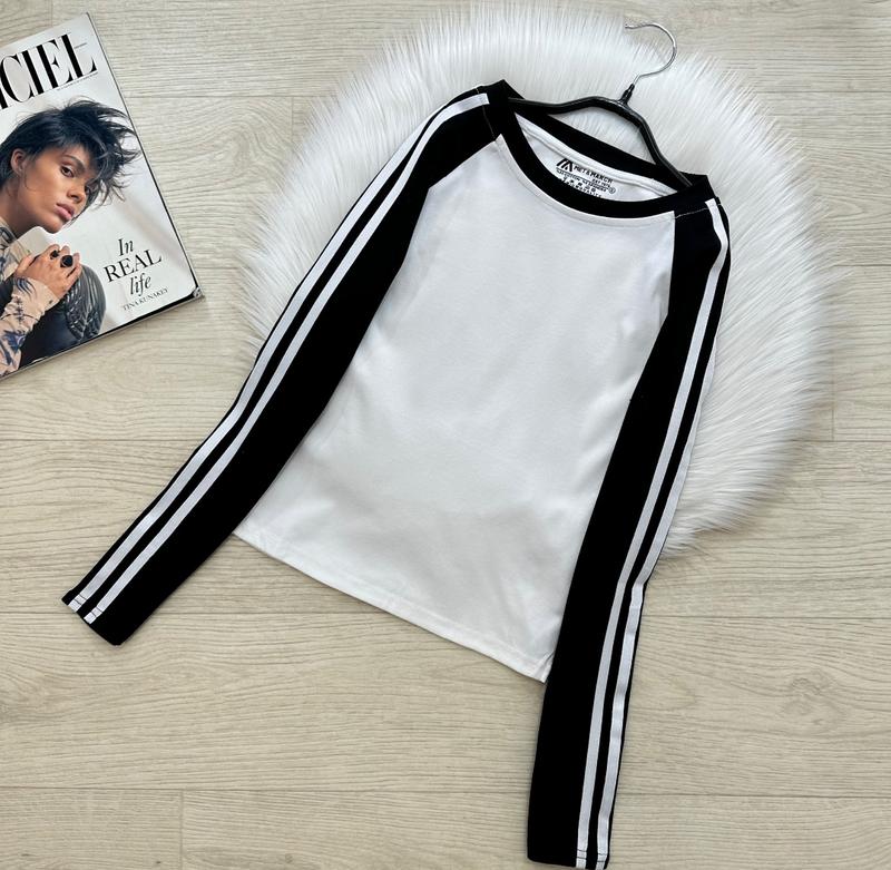 Стильный лонг с лампасами 🤩😎🤩 для девушек подростков и мамочки ❤️😎 Стильная моделька стандартной длины 😍 Красиво садится по фигурке ❤️ Качественная плотная ткань 👍🏻 Хорошо тянется 👌🏻 Тканина: рубчик ❤️ Виробник: Китай 🇨🇳 р.M (158-164)-2шт ЗАМІРИ ⤵ +/- 1-2см!!! р.M- длина от плеча 52см/ рукав от горловины 67см/ ПОГ 40см (ТЯГНЕТСЯ)