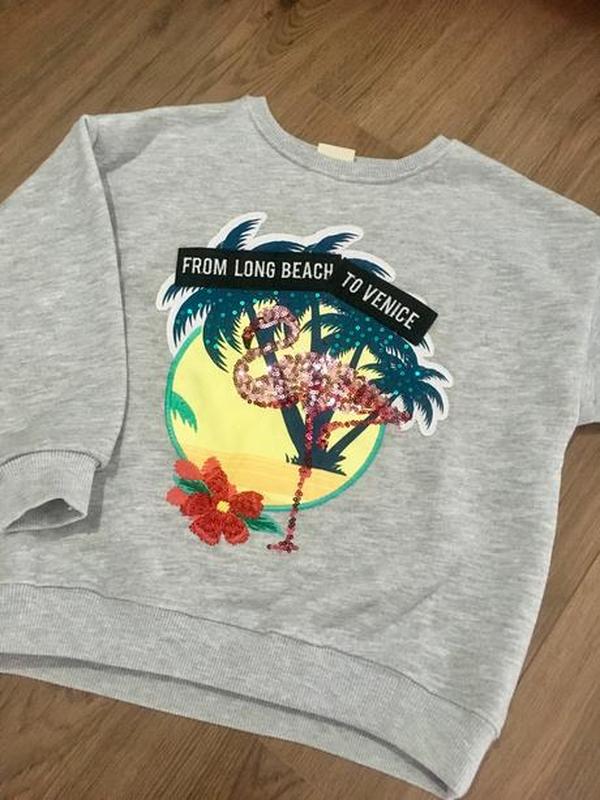 Світшот з маєтками та аплікацією. Без утеплення. Бренд - ZARA Розмір вказано - ПОГ - 48 Рукав від горловини - 60 Довжина по спині - 52 Стан - ідеальний