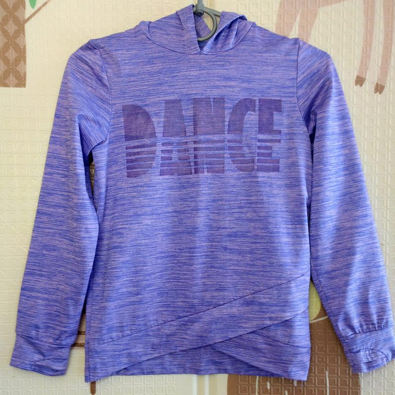 світшот бузкового кольору зі смужками на дівчинку 8-9 років, стан нового, спереду внизу дуже прикольно зроблений овальними вирізами, на рукаві є отвір для пальця. з капюшоном, довжина 54, ширина 38, рукав 52