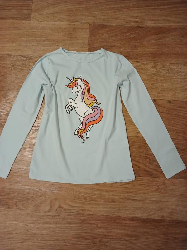 Якісний бавовняний регланчик на дівчинку з улюбленим принтом. Колір блакитний. Розмір 134 см. Стан ідеальний, переросли. Заміри дам, пишіть.