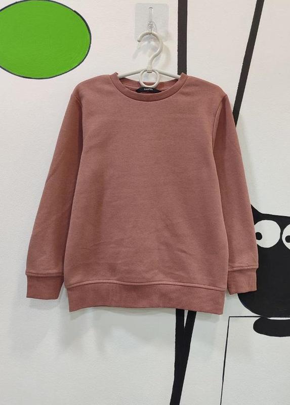 Світшот з флісовим начосом всередині для дівчинки. Довгий рукав з манжетами. Теракотового кольору. Склад: 80% бавовна, 20% полієстер, фліс.