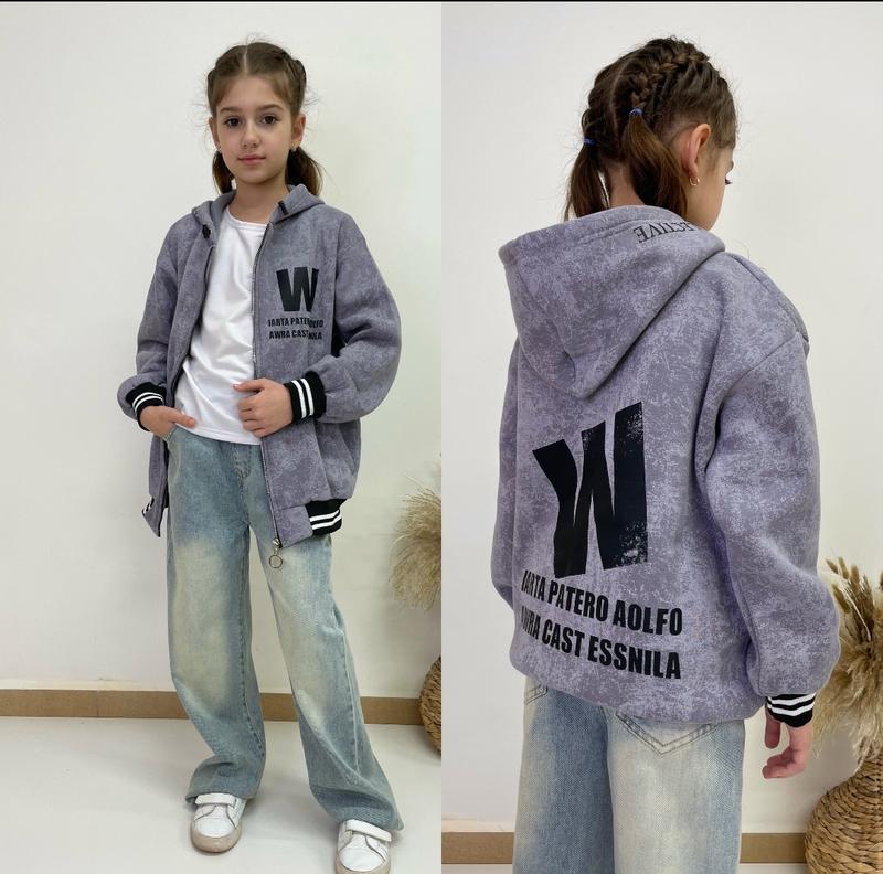 через кнопку купити тільки повна оплата!!! Арт 5563 Крутий бомбер Дуже теплий З капюшоном та кишенями З трендом накатом Тканина трехнитка на флісі Зріст/довжина/пог/рукав від горловини похибка+-2см 140-146/61/50/58-2шт 146-152/62/52/62-1шт 152-158/64/53/63-1шт