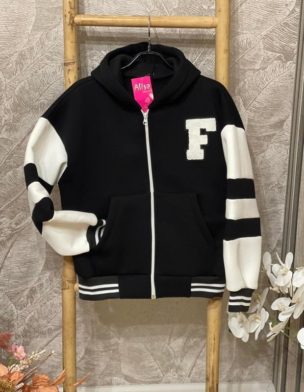 через кнопку купить только полная оплата!!! Теплый и стильный бомбер с капюшоном. Застегивается на молнию. Есть карманы. Ткань - турецкая трехнить на флисе. Хорошее качество! Замеры: 128(128-134) длина - 49см, полуобхват груди - 46см, рукав от горловины - 59см. Мс