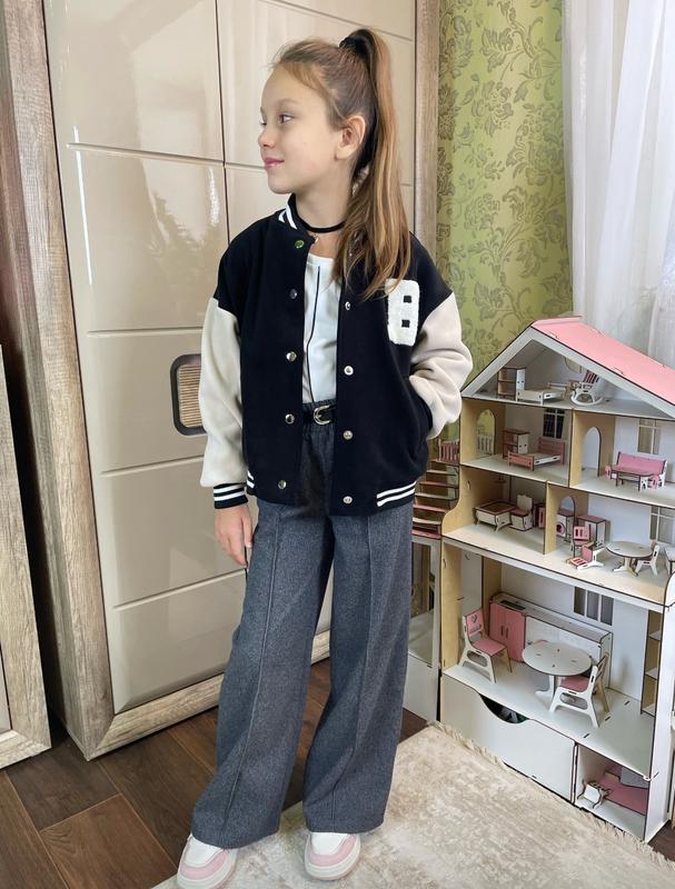 через кнопку купити тільки повна оплата!!! Мега крутий, теплий і стильний бомбер для красунь 💗 крій оверсайз Тканина дабл фліс, якість 🔥 Застібається на кнопки, є кишені ВЕЛИКОМІРИТЬ! Заміри: довжина/пог/рукав від горловини 128 - 50/44/57 134 - 53/45/60 140 - 55/47/62 146 - 57/48/65 152 - 58/50/68