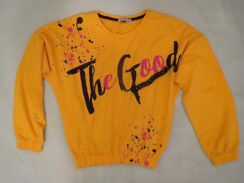 Світшот укорочений на дівчинку р.146-152. Заміри: довжина 49см рукав 43см (рукав спущений) ПОГ 52см плечі 56см Стан дуже хороший.