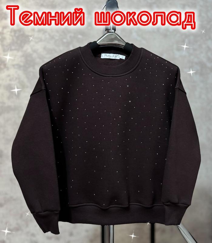 Стильний світшот з стразами Тканина турецький трикотаж на флісі ЧУДОВА ЯКІСТЬ, РЕКОМЕНДУЮ 🥰 Ціна 980 грн заміри:довж/рукав від горловини/п********** 152р-54/67/55 158р-57/70/57 164р-59/73/59 +-1 см 146р-1шт 152р-1шт 158р-1шт 164р-1шт