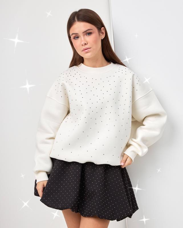 Стильний світшот з стразами Тканина турецький трикотаж на флісі ЧУДОВА ЯКІСТЬ, РЕКОМЕНДУЮ 🥰 Ціна 980 грн заміри:довж/рукав від горловини/п********** 152р-54/67/55 158р-57/70/57 164р-59/73/59 +-1 см 146р-1шт 152р-1шт 158р-1шт 164р-1шт