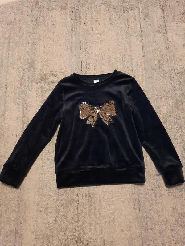 Світшот темно-синього кольору з бантом паєтками-перевертишами