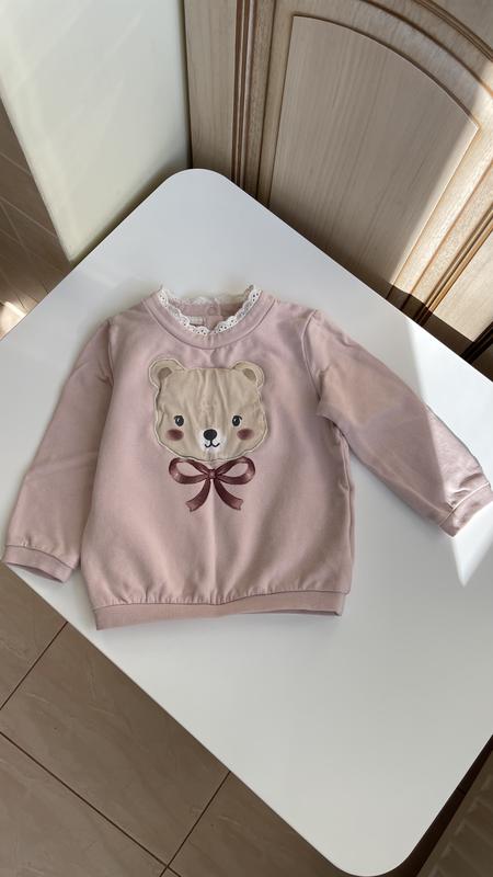 Новий світшот на дівчинку Дуже красивий Ця рюшечка біля шиї Ведмедик Краще на 9-12 Прогадала з розміром