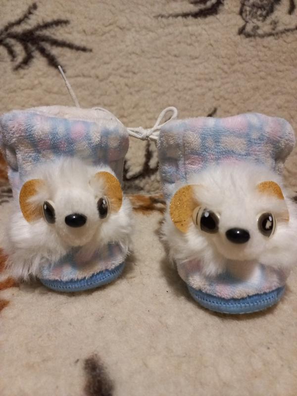 Довжина підошви 12.5см. Липучки по обидві сторони чопика. Стан нових. .Мягенькі та пухнасті. Підошва гнучка та єластична
