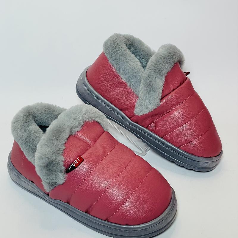 Яркие , стильные,Тёплые тапули девочкам Верх эко кожа Внутри утеплённые Прошитые Отличный вариант для частного дома Можно смело выходить на улицу Представлены в 4 -Х цветах В наличии 3 размера Замеры указаны от края до края по стельке 29-30-18,5 см 31-32-19,5 см 33-34-20,5 см
