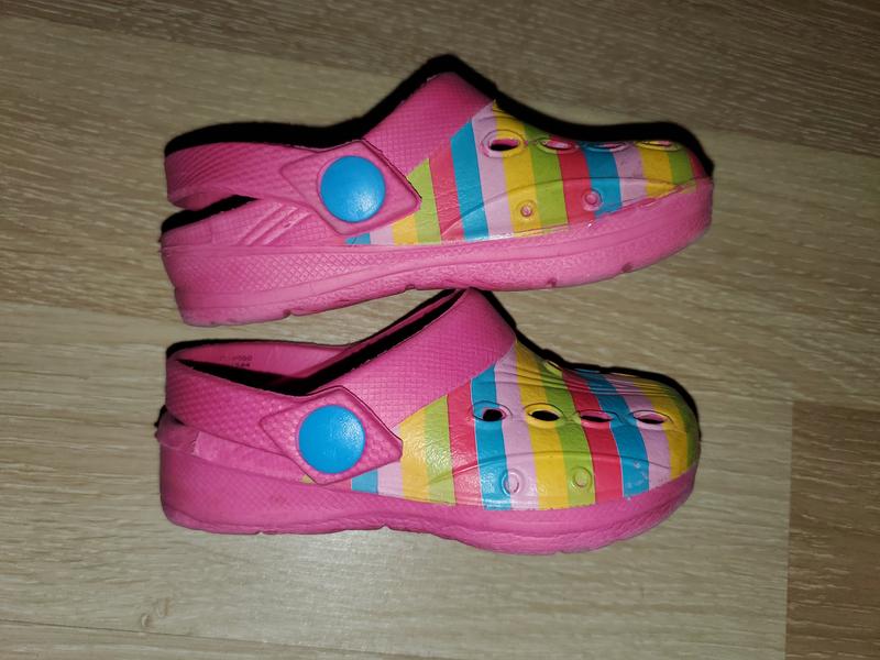 Підійде на 22-23 розмір. На одному кроксику на підошві слід від абрикоси але його в носінні зовсім не видно )