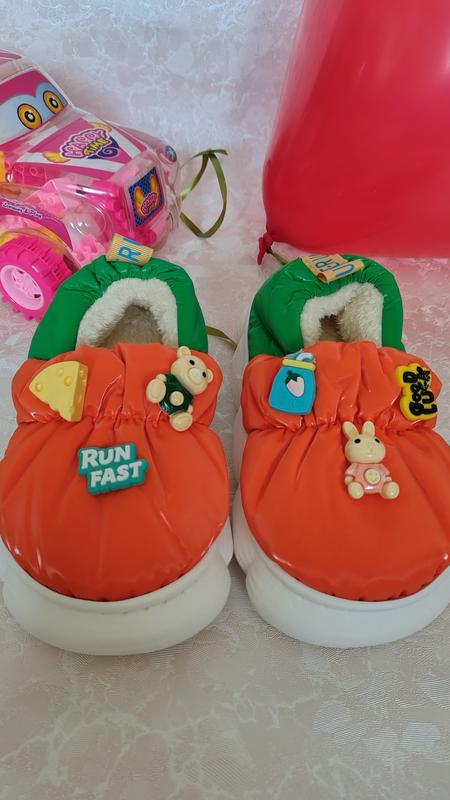 Дуже гарні та теплі дитячі тапочки. Виготовлені з плащівки, та утеплені еко-хутром. Підошва піна. Джібітси кріпляться на кнопочки. Заміри зроблені власноруч по внутрішній стороні устілки. Можуть мати похибку, так як із-за щільного хутра не можливо точно виміряти. Розміри: 28/29 -17,5 см Наявність розмірів уточнюйте. Відповім на всі Ваші питання.