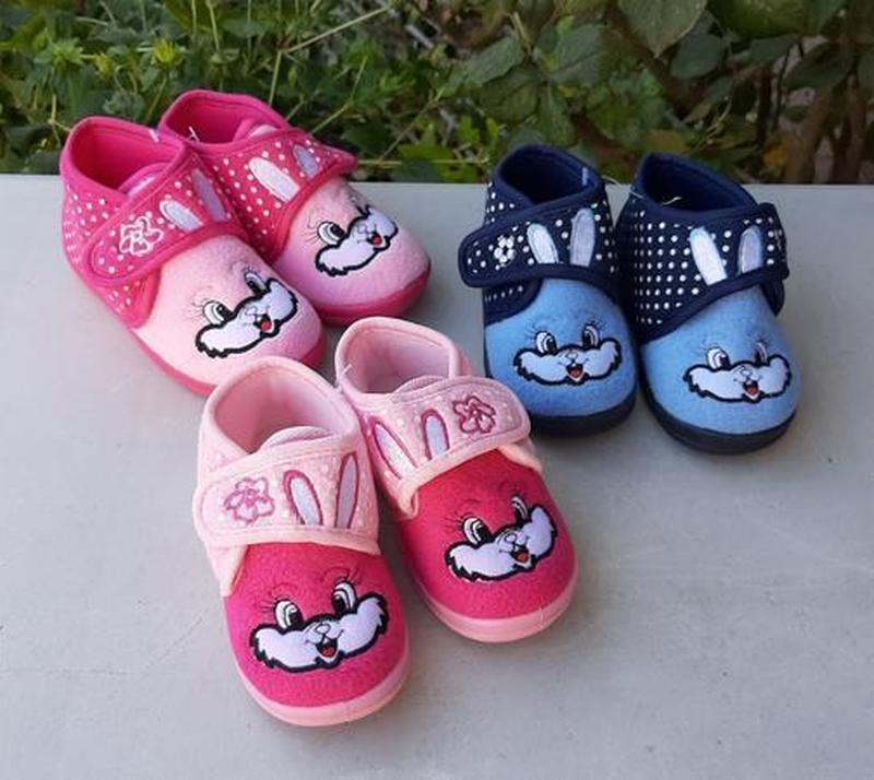 Особливо гарні "тапатаулі" — для маленьких ніжок Верх-фліс усередині підкладка та устілка-текстиль. Є ззаду задник- продовження підошви. Прикрашений — красивої вишийкою зайчики. Застібаються на липучку, яка добре тримає ніжку Дуже гарні. Можна прати в машині за темп.30% рожевий носок 20р. за устілкою 12.5 см блакитний носочок 19 р. устілки 12 см темно-рожевий носок 18 р. по устілці 11.5 см