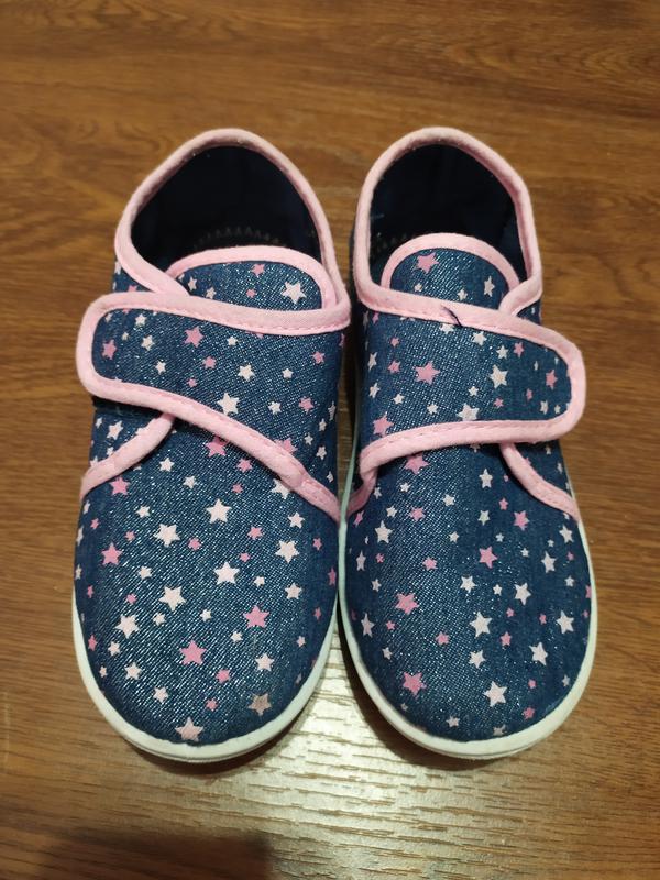 Кімнатні капці у стан нової речі. Були взуті декілька раз в квартирі, за літо нога виросла. Купували в Польщі. Розмір вказано 31, по устілці від краю до краю 19 см, краще розраховувати на ногу 18,5 див. Липучки тримають відмінно! Зверху тканина як джинс, всередині тканина бавовна.