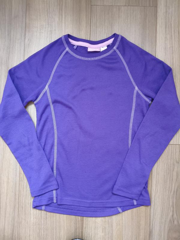 Термореглан crivit. Фіолетового кольору. Приємна на дотик. Не кусається :) Розмір по бірці 146-152, але краще 140-146. Довжина 49 (52), ширина 36, рукав реглан 60. В хорошому стані.