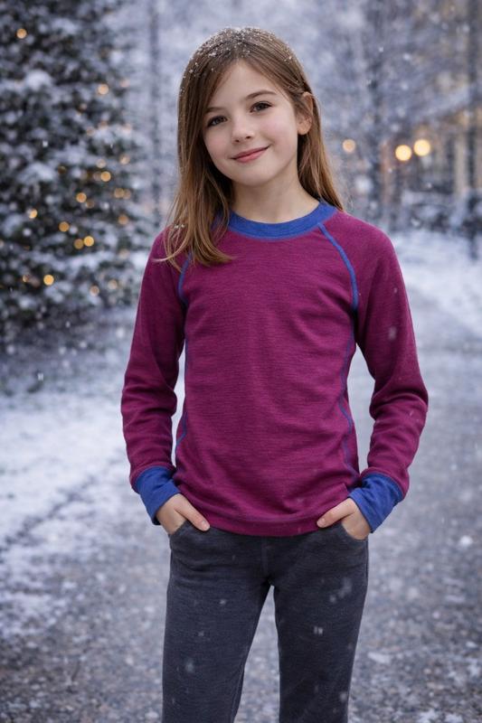 Дитяча термокофта від бренду Mountain Warehouse, на дівчинку віком 9-10 років, в малиновому кольорі, тканина шерсть мериноса та поліестр.