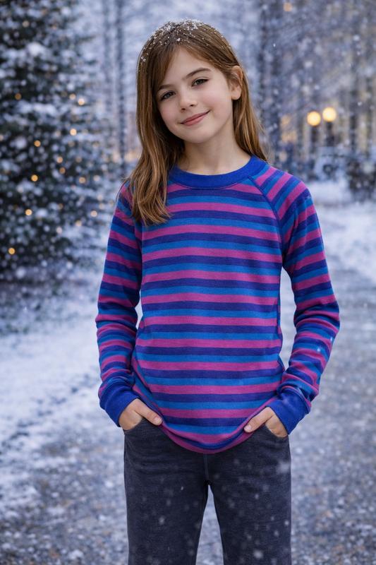Дитяча термокофта від бренду Mountain Warehouse, для дівчинки віком 9-10 років, в смужку з яскравих кольорів. Тканина шерсть мериноса та поліестр.